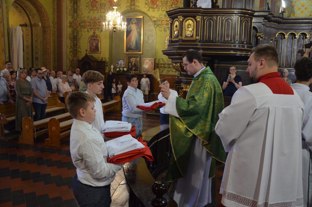 21 września 2025 roku w naszej parafii odbyła się uroczysta suma połączona z obrzędem włączenia kandydatów do Liturgicznej Służby Ołtarza. Podczas liturgii czterej chłopcy: Artur Śmigiel, Tomasz Bach, Wiktor Bach oraz Wiktor Izdebski zostali przyjęci do grona ministrantów przez opiekuna wspólnoty ks. Kamila Jaworskiego.