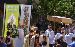 Dziś obchodzimy Uroczystość Najświętszego Ciała i Krwi Chrystusa, popularnie nazywaną "Bożym Ciałem". Tegoroczna procesja eucharystyczna, ze względu na obostrzenia związane z pandemią koronawirusa, sprawowana była w odmienny sposób. O godzinie 9.30 odprawiona została Msza Święta, której przewodniczył i kazanie wygłosił ks. Proboszcz Roman Froń. Po Eucharystii odbyła się procesja do [...]
