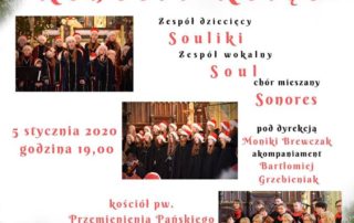 Zapraszamy na Koncert Kolęd, który odbędzie się w Parafii pw. Przemienienia Pańskiego w niedzielę, 5 stycznia 2020 r. o godzinie 19.00. Podczas koncertu wystąpią: Zespół Dziecięcy "Souliki", Zespół Wokalny "Soul" oraz Chór Mieszany "Sonores" pod dyrekcją p. dr Moniki Brewczak. Zespołom będzie akompaniował Bartłomiej Grzebieniak.